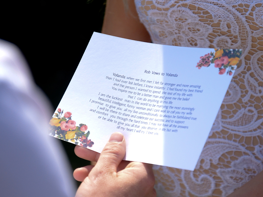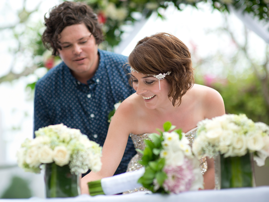 Legal weddings are performed by a religious minister followed by a civil registrar. For commitment or symbolic weddings, we provide a professional celebrant to lead your personalised ceremony.